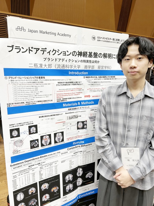 商学部マーケティング学科・綿貫真也教授のゼミに所属する二瓶凛大郎さん(商学部経営学科4年)が、10月12日(日)に法政大学で開催された『第14回 マーケティングカンファレンス2025』にて、ポスター発表を行いました。
