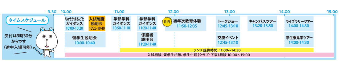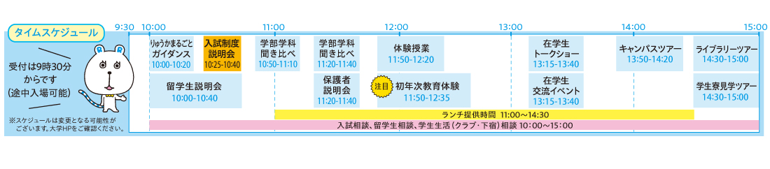 - プログラムは変更になる場合があります。来場前に必ず、こちらの「入試相談会&大学見学会」ページをご確認ください。